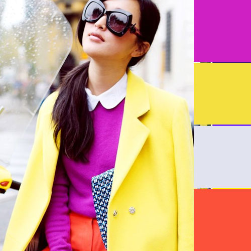 اگر پست چرخه رنگها را خوانده باشید با دایره رنگ و مکمل هر رنگ آشنا هستید، مکمل رنگ بنفش رنگ پرانرژی زرد می باشد پس بهتر است قبل از هر رنگ دیگری سراغ ست های بنفش با رنگ زرد برویم. در ترکیب زرد و بنفش همه چیز بسته به انتخاب شماست اینکه چه میزان از کدام رنگ زرد را استفاده کنید سلیقه و سبک شما را میسازد. شاید یک اکسسوری کوچک یا شاید ست کیف و کفش شما کاملا زرد باشد، پس خوب فکر کنید و ست لباسی را طراحی کنید که دقیقا مطابق با سلیقه شماست.